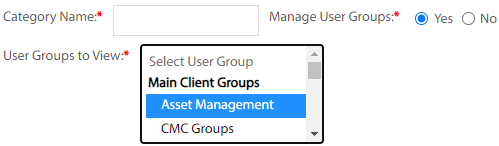 Fill the Category Name, Select radio button of Manage User Groups & Select User Groups to View from the dropdown list. |