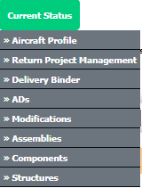 | 10. | Now, hover over the Maintenance Status button and Click on the Maintenance History button. It will open new window. NOTE: The Maintenance Status button will become active once an aircraft record has been selected. |