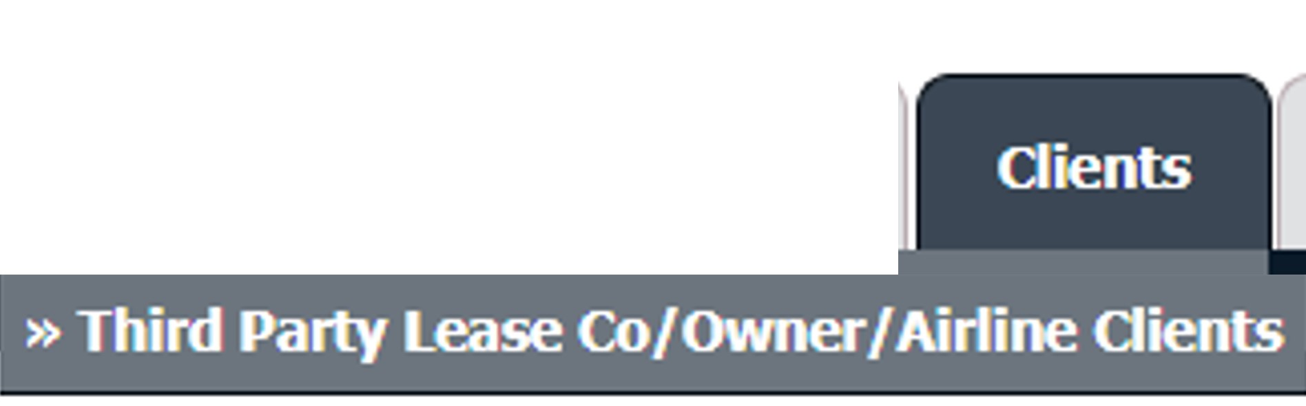 | 2. | Hover Over the Clients tab and Click on the Third Party Lease Co/Owner/Airline Clients tab. | |