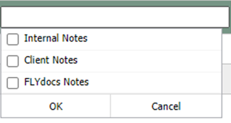 | 7. | Hover over the empty box given below the Communication History column, it will show the dropdown where one can select either one of Internal Notes, Clients Notes, and FLYdocs Notes. | |