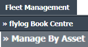 | 2. | Hover over the Fleet Management tab then Hover over the FLYlog Book Centre Tab and Click on Manage By Asset tab. |