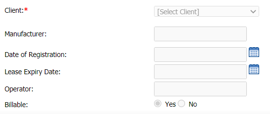 Fill in the highlighted fields and select the new aircraft registration from the dropdown.