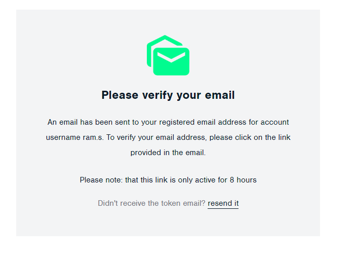 You will receive an email for verification of your registered email ID, If you will not received an email then click on resend it button to resend verification email. |