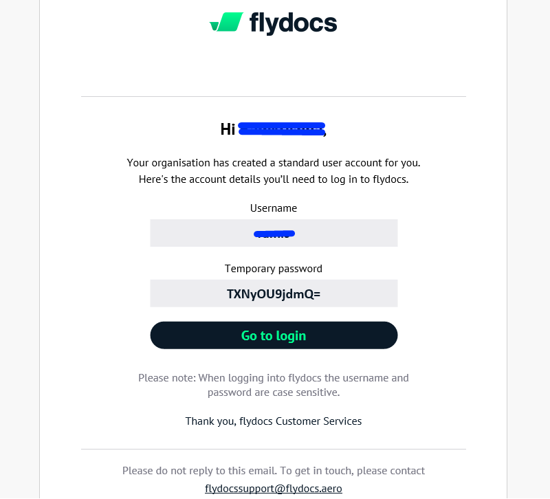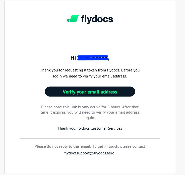 Check your inbox with the mail Received as "flydocs - Access Details". Open the provided Link. |