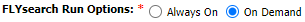 Note: "FLYsearch Run Options: Always On" will be disable for Delivery bible/Tech Link section. |