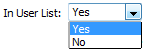 | 6. | Edit the option ‘In User List’ from 'No' to 'Yes'. | |