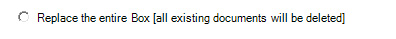 | 15. | The Replace option will overwrite the existing box on the server with the new box you are uploading. | |