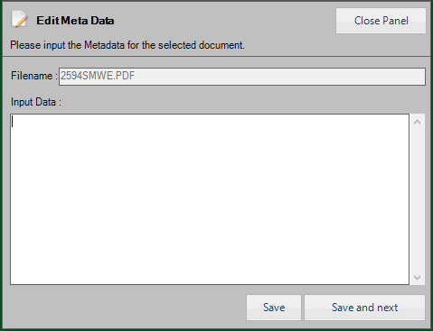 | 13. | Within this panel you will be able to input the meta data text you want to add to this document within the 'Metadata' text box. | |