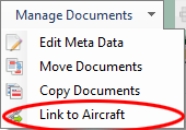 | 9. | Select the option for 'Link to Aircraft' from the 'Manage Documents' dropdown. | |