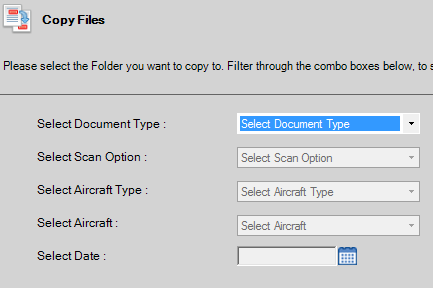 | 10. | Select the Document Type and Scan option from the combo boxes provided [Please note 'Scanned by Asset' will require you to select a aircraft] | |