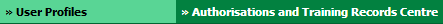 | 3. | Hover over the Authorisations and Training Records Centre tab and Click on the User profiles tab. | |