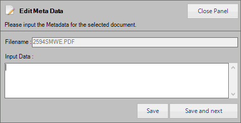 | 13. | Within this panel you will be able to input the meta data text you want to add to this document within the 'Metadata' text box. | |