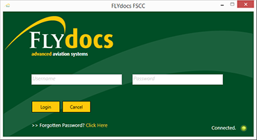 | 1. | Login to your account using the username and password provided. Note: These login details will be the same as the FLYdocs web platform. |