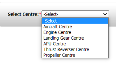 | 9. | Select Centre and other relevant details. Note : You can filter out Aircraft by typing-In the MSN or Tail number on the dropdown box. |