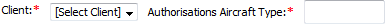 | 5. | Select client from the list and Enter Authorisations Aircraft Type into textbox. | |