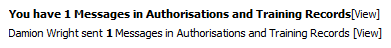 | 7. | Go to Authorisations and Training Records Notes section where you can find notes assigned to you. | |